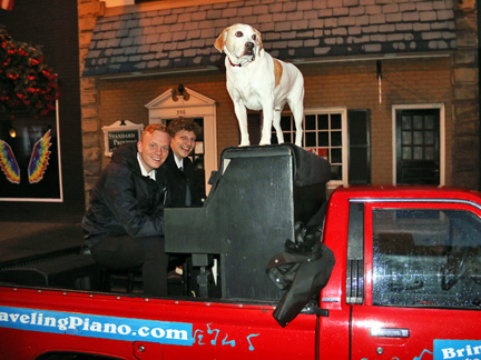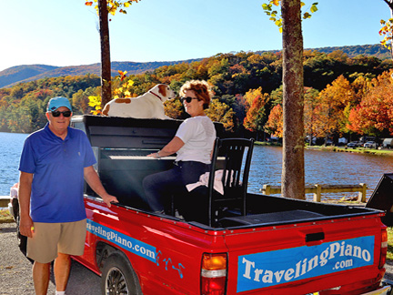 Bill, the owner of the house where we are staying came home to check on a few things. His wife Bev is away still recuperating from knee surgery. We got to doing some yard work around the house together. I planted 36 large pots of pansies. In this Virginia environment they will last throughout the winter and Bev loves them. He wants to make her happy when she returns home. From all the digging and bending over I will be curious to what that does to me physically. It was difficult not to do any Traveling Piano work in any way today. My work helps keep my sanity in tact but I wonder how healthy it is to feel the void of not doing it so strongly with just one day away from it.