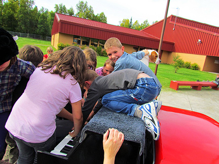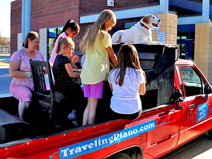 A school teacher emailed me about a month ago asking of I would bring the Traveling Piano to her elementary school for their Arts Festival. Thinking I would probably do it, I remembered it was in May but not the date. Another email came in last night from some guy asking that I go to another school which reminded me to check the date for the first request and found it was for today! That second request was fortuitous for todays school and so of course I went. It was a great time. The teacher has a child in the school who could not be there. The child broke her ankle yesterday. So after the school I went to their house for the child. Some neighbors appeared and I could see good relationships in the neighborhood.
