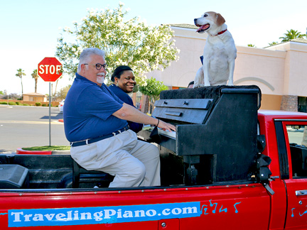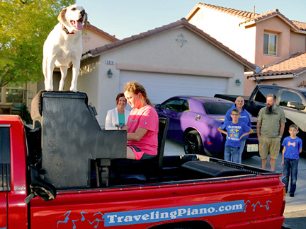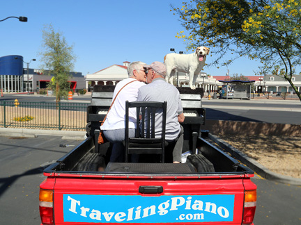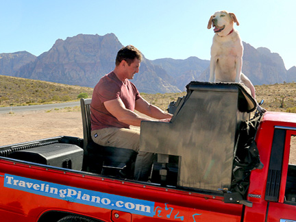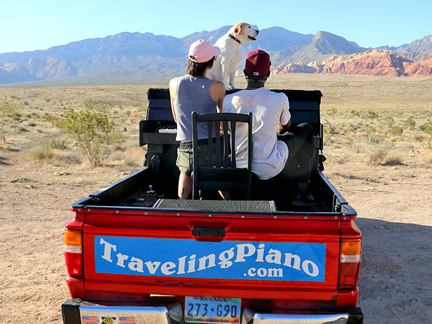 So, I think this is the first time I've ever written this much or in a newsletter formate. I feel so strong about the appreciation and care you have shown it just has to be. It is a long letter, I know. How about the truck?!!! That baby still going after 35 years! It cost about $3,000 in repairs last year but that got us cross country thank God through the fundraiser I had. I have to say well, of course I know you understand... that if you know of anyone who might join you in contribution please urge them to do so. And/or someone who has room for, or may desire a house-share situation just about anywhere in the country for when I need to get out permanently from where I am. Also, I'll need to get out of Las Vegas again for the summer concerning the heat for myself, Mo, the truck and the Traveling Piano's work. If you know of anyone we can stay with for like a month at a time, someone who has a time share they do not use (i'll pay the fees) or motel reward points, needs a house sitter, etc... Where I stay is important concerning functionality and I cannot be moving around every few days at this stage of my life. A level of comfort is needed to be able to sustain myself and work. You know, like what was mentioned above... clean, quiet, private, light, parking for the truck, mo, it is a lot and... it is what it is. I know you understand.