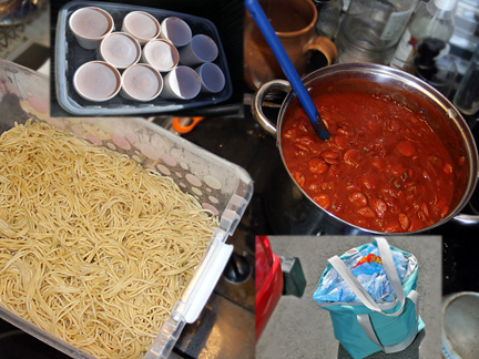 It would be nice to take pictures of all the food I cook, make a video of what I go through with prep and cleanup in the small space I have to use, it would be of great interest, funny and fun but... I just do not have it in me to do. Prioritizing is a must and I have no choice concerning mental and physical limits. There is only so much I can do. For two days I have been making spaghetti with turkey hot dogs sliced thin to share on the streets. I took it all out along with two large cases of cold water that my friend Eric contributed. Carrying the water up the stairs to my apartment to put into the fridge and then down again to the truck with the food, I can barely do it but I do... do it! I had half the fixings from last year as in boxes of spaghetti, a bulk can of salsa, cans of tomato paste, ready made spaghetti sauce, Italian seasonings, fresh onions, salt and I purchased turkey franks to slice up and fry in butter to use as meat in the sauce. I had large containers, spoons and paper towels for napkins. All the work and food made for about 25 people but they each had a huge dinner. Some save it for two meals, others share with their friends.