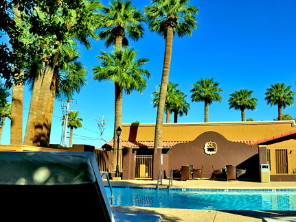 Yesterday wore me out to the point of not being able to travel today. So, a day to relax and then I will push hard tomorrow to make up for today or something like that, hopefully. Friends are pulling through with contribution which is very encouraging. I have enough money to get there. Then, there is the staying and return. But for today, I took a little walk with Mo, did a lot of online work and sat without thinking just feeling gratitude and having a spiritual visit with those who have passed in my life. The motel is practically empty. I sat in the shade by a pool with Mo and no one around under the most attractive palm trees I've ever seen.