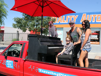 The wind was ferocious today with up to 70 mile an hour gusts predicted. There was an alert for really bad air with the desert dust and city dirt blowing around. Even low flying planes coming in for landings we're barely visible. I was out with the Traveling Piano and it did not seem to bother me but I'm pretty sure tomorrow I will feel the respiratory effects. A woman by herself on the street was somewhat mistrusting when I offered her water but Mo's presence and the Traveling Piano truck itself in being something different helped. I was creating music up the street and she was drawn to it. Eventually she trusted me enough to get onto the piano seat herself to create some music and have some relationship in the best sense. She did not want her picture taken and these days I'm not really into taking pictures. Do people need to see the proof of what I am doing? Never, do I want to take pictures and share the journey out of necessity to gain anything or prove anything. There is no fun in that and as it is, I am working as hard as I can in doing everything I can do. If it ever comes to having to prove that, I will end it all.