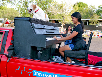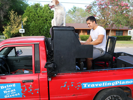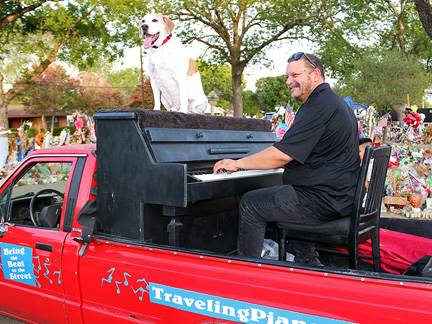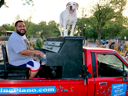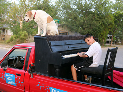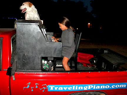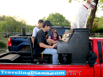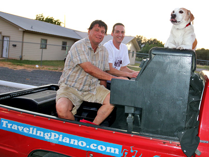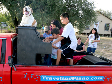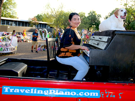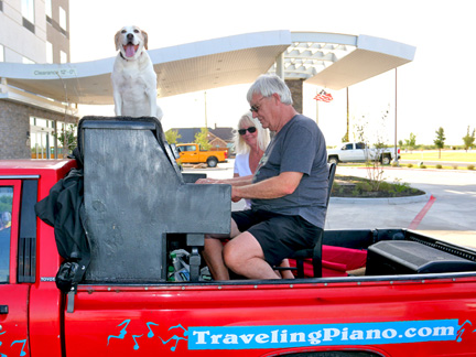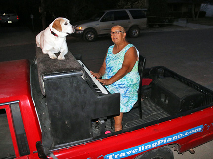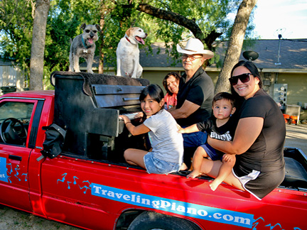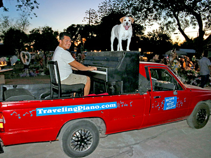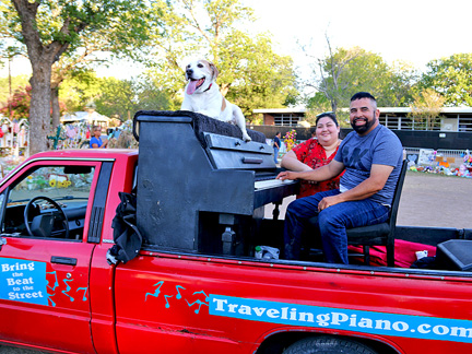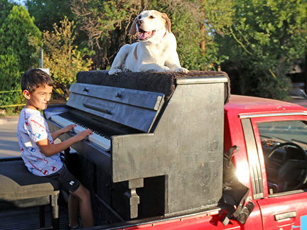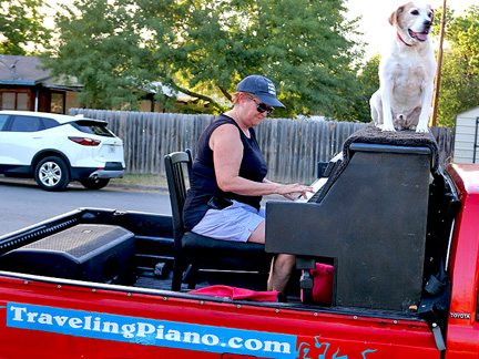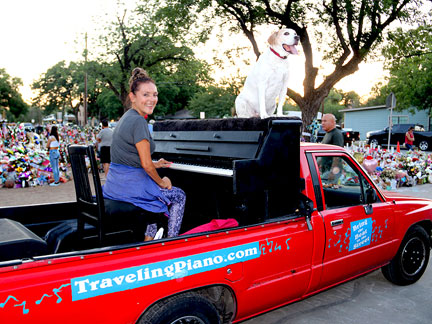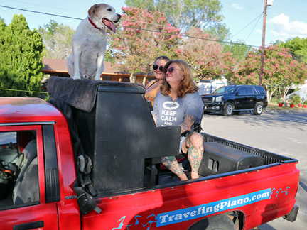 My name is Danny Kean. I have a Traveling Piano with a pup named Mo who hangs out on top of the piano in the back of a pickup truck. For the last fifteen years we have traveled throughout the northern hemisphere and also to the south of Mexico unobtrusively visiting communities and creating short one-on-one relationships through music and respect. The Traveling Piano is not for show. I do not perform or entertain. My pup Mo and I work as individuals without fees or tips and without commercial, organizational or political affiliation. My music is improvisational and if we meet I will invite you onto the piano and show you some music for yourself. I am not independently wealthy. Mo and I are finding our way from Nevada where we live, to Uvalde through the help of a few friends. Once again, our purpose is for relationship with trust in creating a feeling of validation and reassurance for the worth of humanity. I will have no other interest than in the individuals we encounter through grace and humility. If nothing else the Traveling Piano becomes a moment of worthwhile distraction for everyone who finds us. I live my life through divine providence with faith and gratitude and have quite a bit of personal experience with the tragedy that has happened to the community of Uvalde which... has given me the insight and sensitivity to present potential for healing and desire for love of life.