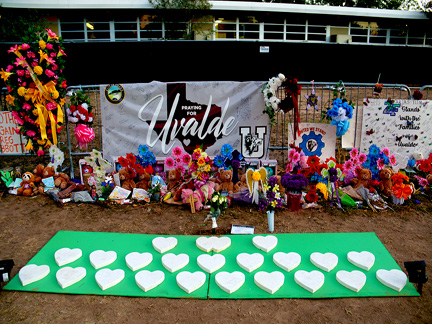 I am feeling very overwhelmed with emotions of all kinds having just finished creating music and interacting with those visiting to show respect outside the Robb Elementary School here in Uvalde, Texas... for the last time. The flowers and other objects of respect are piled three feet high over the entire area. In seeing how significant the Traveling Piano is and how needed, I almost do not want to leave but it is just unrealistic to stay much longer. Never have I been in a place with so many cousins. Everybody is a cousin, it is almost funny. Everyone has tons of cousins. Makes me wonder how they can all find people to marry who is not a cousin! It is kind of funny. Anyway, it was a fruitful time and I am so thankful this has all worked out for the good.