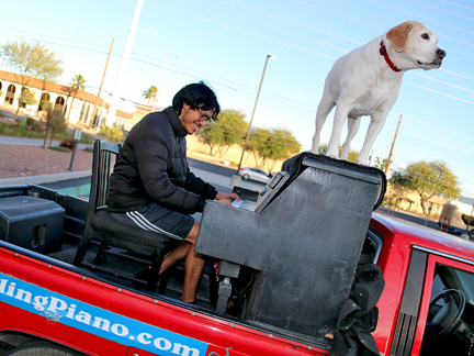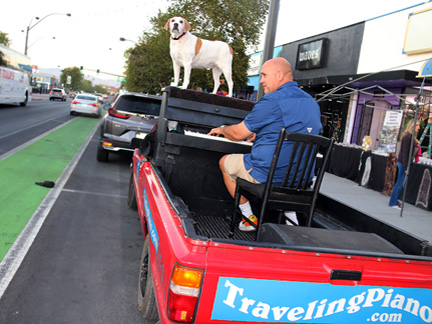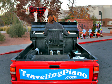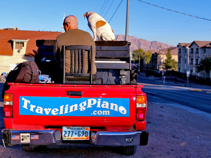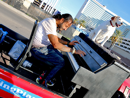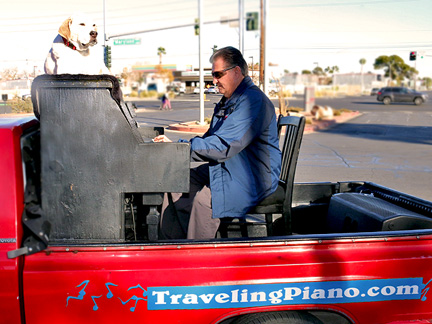 Well, this year has been different in that with the Traveling Piano, I have reached a level of "celebrity" and/or "fame" whatever that means, lol (words others use) in Las Vegas, more then I could ever have imagined. I've even surpassed Mo! As I walk down the street, I hear people say, "thats the Traveling Piano guy." People from all walks of life acknowledge me with respect and appreciation. I am as they say, "seen." What is interesting about that is that it changes nothing about me from within. My personal turmoil and emotional struggles remain unchanged. I feel no better about myself as a result of the acceptance of others and society in general. It is fun but helps my life in no way except to validate my purpose. My purpose has become work! I have mixed feelings about that and the limits coming on fast as a result of age and what I need to do in order to continue. There is absolutely not one positive perk in my life that the illusion of celebrity or fame brings... like money, contacts and relationships with influential people. I am not in the high life in any way specifically fun wise, like with the fancy stuff. Lol, "fancy" I just had to use that word. Although, I'd like some of that. It would stimulate my life in general, I think.