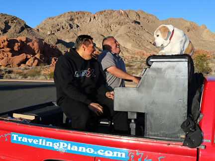 I decided to head towards Lake Meade as in take a smaller road verses the possibility of breaking down on the interstate... if that was going to happen. Then the day just moved forward perfectly. We went on a hike up a mountain, I laid in the lounge chair I brought with me while Mo laid in the sand while we listened to silence and I meditated. The sun and temperature was perfect. There was also musical Traveling Piano interaction with people who discovered us and showed interest. I got back just as it began to get dark and made sure that would happen just in case the headlights went dead.
