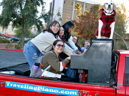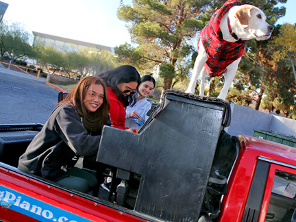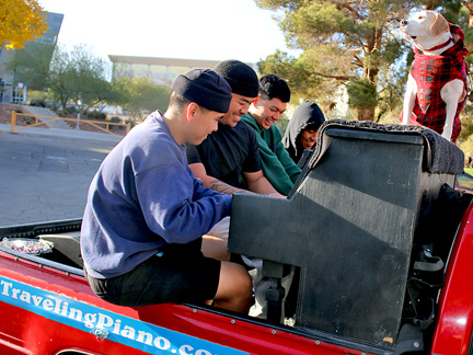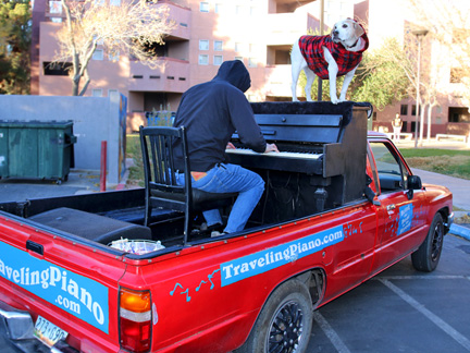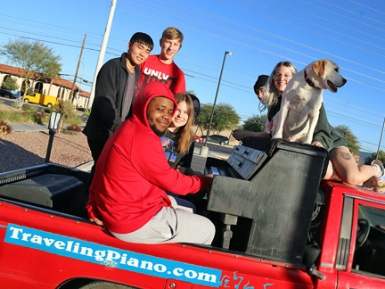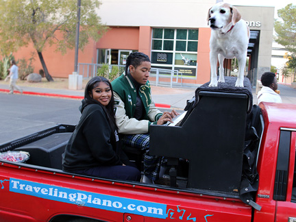 Onward to the University of Las Vegas student campus once again as I tell myself, you can do an hour and a half that is all you need to do. It was a wonderful time with random students who found us while walking by. When I turn on with my energy for work I amaze myself and then when I am done it is like zero ability to think or do anything. My world is totally spent. With the fundraising, little is getting done because I just cannot do both the Traveling Piano work everyday and then switch into the posting online for requests, canvasing people in person, making a plan of action, etc...
