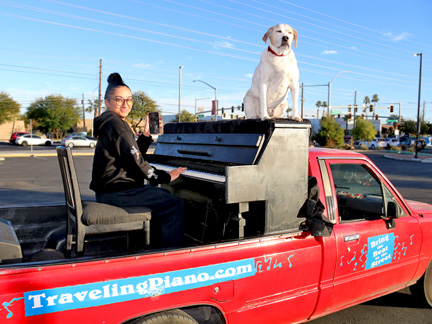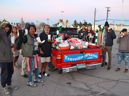 The details I put into what I do is what helps people to remember. My interactions create memories that stick as a result. The fact that I do community outreach with a dog and the piano truck helps people to remember the kindness and also details. People need as many good memories to hold onto as possible, especially now in the world and especially those living on the streets. They crave good relationship and also appreciate it much more consciously in general. I cannot say enough how grateful I am to have a way to express myself and who I am, what I am about and to have it accepted, wanted and respected, especially at Christmastime.