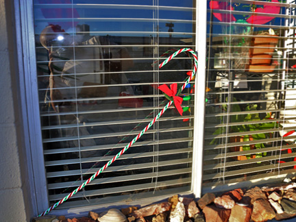 So anyway also today besides creating music and sharing the Traveling Piano on the street... I have a tradition here at my apartment complex in the middle of the night I used to put a 4' plastic candy cane Christmas decoration on every apartment door (about 70 of them) as a surprise for the residents. Some put it in their windows, others leave it on the door or take inside their room and some throw it into the alley trash bin. Its fun for me to do but this year... well, the idea of sneaking around in the middle of the night is no longer a good idea. If someone sees me doing something they need to see it in broad daylight so I do not get killed. The ability to remain anonymous in life, not so easy anymore. My one neighbor put his in his window so I copied him knowing it would make him feel good. It did. As he passed by my room I saw him jolt with surprise.