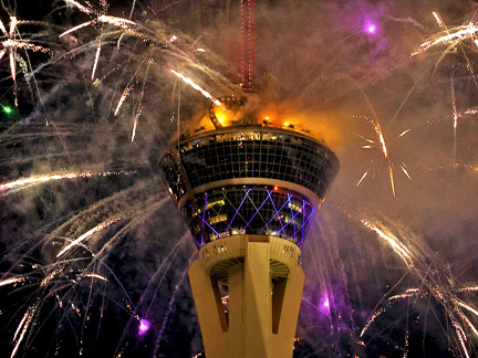 I was torn about some Traveling Piano working on the streets with more hot chocolate and marshmallows for New Years Eve with way too many drugged up people right now verses... Having myself a little New Years Eve in my room with Mo, some music maybe a movie, candles, fireworks out my door over the Las Vegas Strip from the Stratosphere Hotel/Casino and filling my face with some traditional treats like... mango and cantaloupe, orange juice, soda, 4 different types of crackers and mustard, 4 different cheeses, string cheese too with pepperoni, salami, canned sardines,