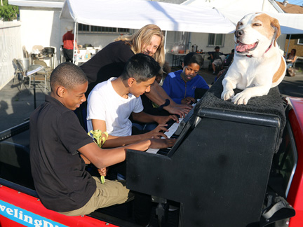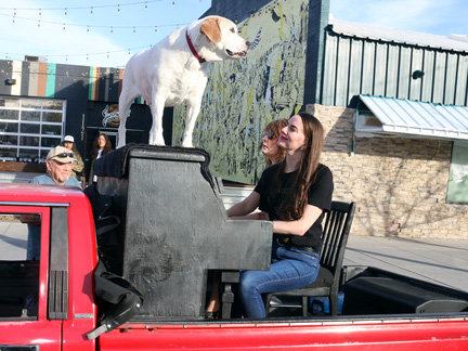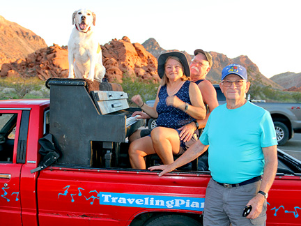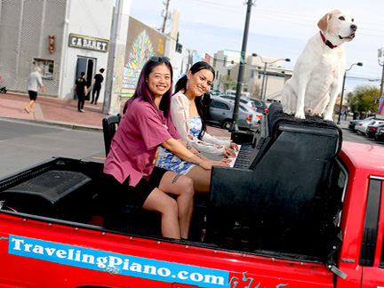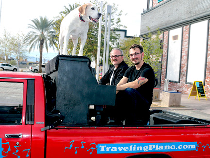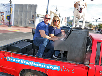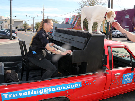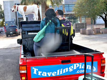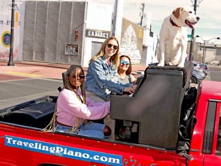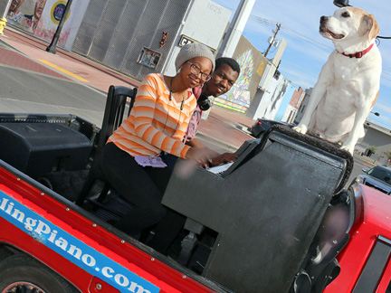 There really does not feel like anything to write about with people and the Traveling Piano that has not been written about over and over. Being in the eighteenth year, with over a hundred thousand and with over a hundred thousand people on the piano bench and having written about it every day, well... yea a lot has been said. Mo and I met a group celebrating their friends 81st Birthday today. They were not musical but love music and so the Birthday theme included musical clothing. The Traveling Piano was a perfect match for their day. They we're so wonderful and full of life and festive. And, I've not spent much time in Arts Square downtown but have been there three times over the last week or two. Every time I have met musicians willing to jump onto the Traveling Piano and that is so fulfilling! I want and need more interactions with working musicians and artists and people young and old who are enjoying life.