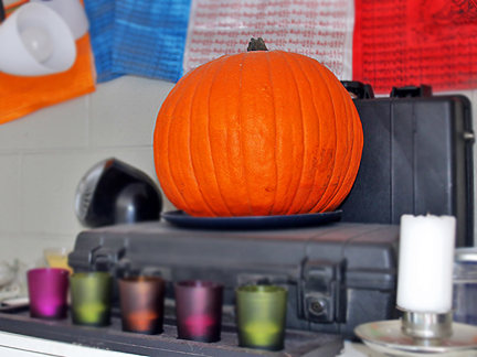 I had to put down my annual pumpkin today. It began to sag. Every year at the end of September when I can find a big pumpkin for no more than five bucks I grab onto it and enjoy until its end. I'll never understand why people throw away a good pumpkin. Its full of color and like having a live flower arrangement that lasts a half year, lol. I've had them last until Easter. I must admit, I was getting tired of it. In the past I've put them outside on top of a wall for people to find and ponder "what the hell is a pumpkin doing there in February." (or March or April) Someone always steals it. This time I put in against a wall in my back ally to teach whoever takes it, a lesson. It was not their pumpkin. It is there for everyone to enjoy. When they picked it up to run with, it broke into a melted mess all over them. Maybe next year they will leave the pumpkin alone, lol!