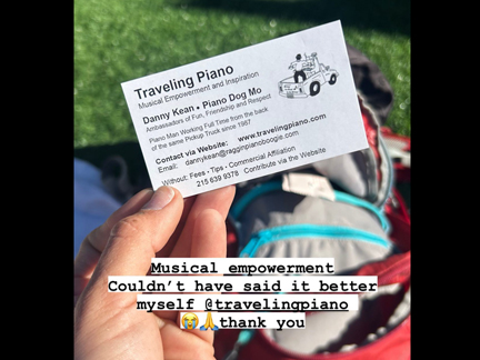 The Traveling Piano's Final Fundraiser Spotfund - Venmo: Dan Kean @TravelingPiano 2156399378 - PayPal Me for the Traveling Piano - CashApp: $travelingpiano - Contribution Page - Email me for snail mail.