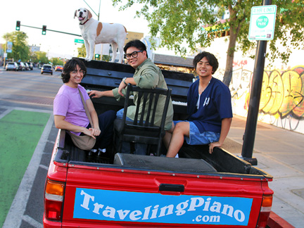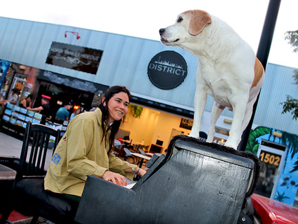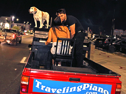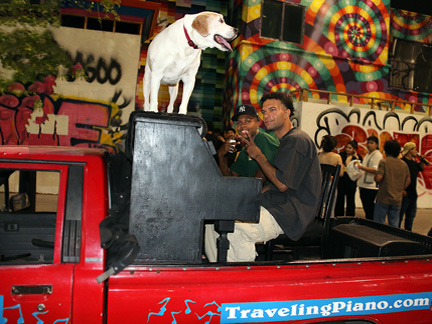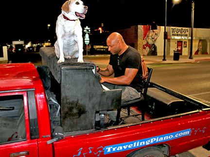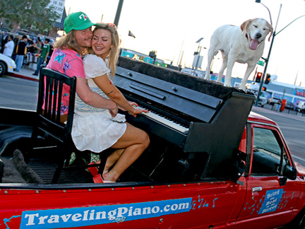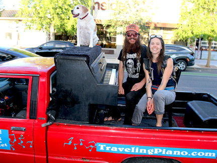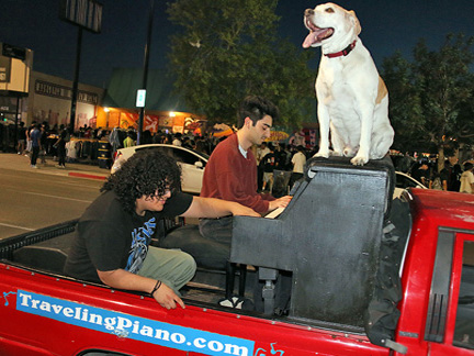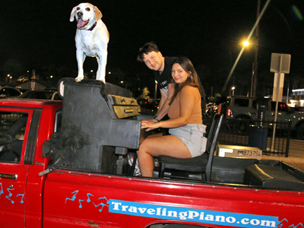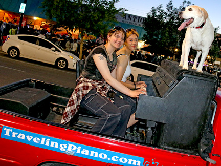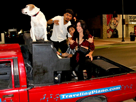 I had a weird night of sleep, got up early went back to sleep. Woke at two in the afternoon feeling rested. Thank God I can do that. A yearning, a feeling told me that I needed to get out and create some music on the street if only just for myself. Once I got going it was after dinner and when I opened my door there was a lot of traffic outside. After a few moments I realized it was First Friday downtown, a hang out event that is getting very crowded now with all the new bars and clubs. Everything was right for me to have some Traveling Piano fun and that is what Mo and I did with people, mostly young kids for about three hours.