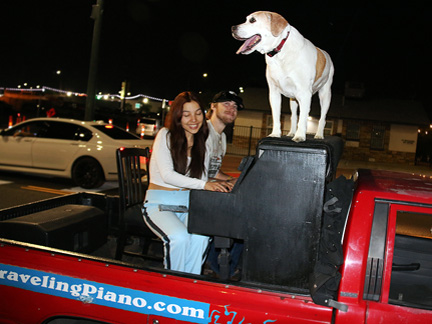 I put the spare piano in the truck with new cables and it worked, didn't work, had troubles and then it worked. Mo and I drove over to Main street to create some music for my sanity. I just needed to create music really bad. Earlier we spent some time in a park where the birds would not leave us alone. Pigeons, starlings, grackles and something else, they kept coming up to about three feet away. People must feed them like crazy because they were fishing aggressively for attention. They were not there to simply say hi. Anyway, creating music on Main Street was short lived because of the noise on the street. I drove to a quiet spot on my street. A couple I had met a few weeks ago and had a talk with randomly found us. They had not been on the Traveling Piano so... that happened. It sort of rounded off the night. I did get the music going again with a little for myself, a little for others and there was the interaction with the couple and that felt good.