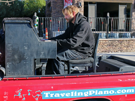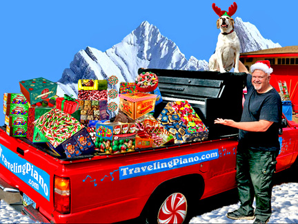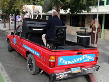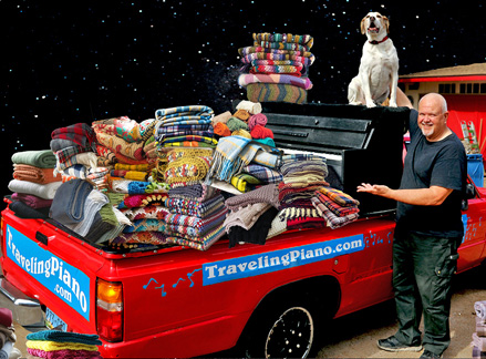 Well, this is it. I am in the last fundraiser ever for the Traveling Piano. I am hoping people will send their best, as in the largest gift or contribution possible to make this journey last as long as warranted into its 39th year. The fact that it has gone on this long is almost unfathomable, eh? The first twenty years for profit is a feat in of itself but the last eighteen years of working with a piano in the back of a pickup truck as an individual with no team of help and without fees, tips or commercial affiliation all for the sake of musical fun, friendship and respect... that is a feat almost beyond belief. So it is. ......