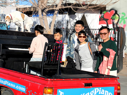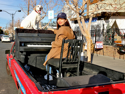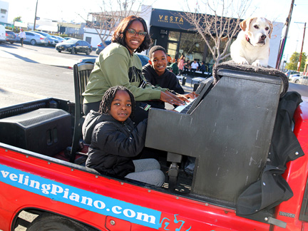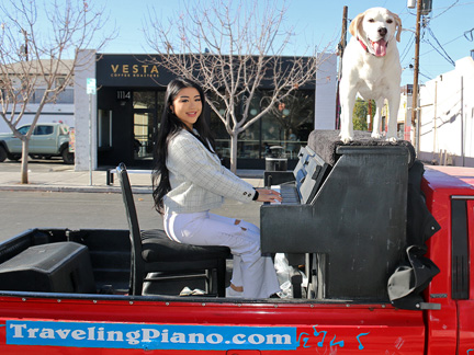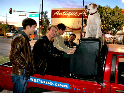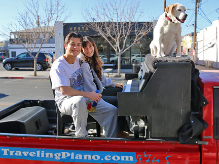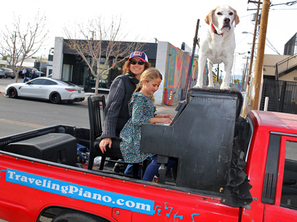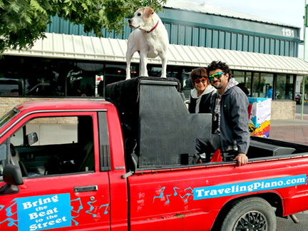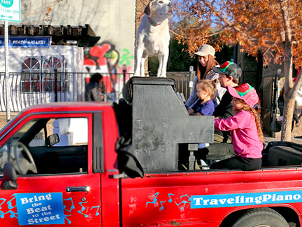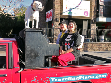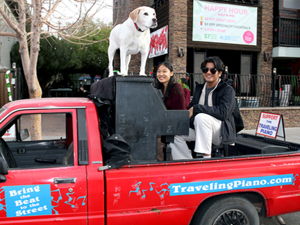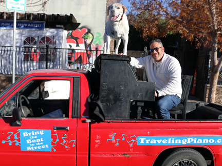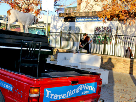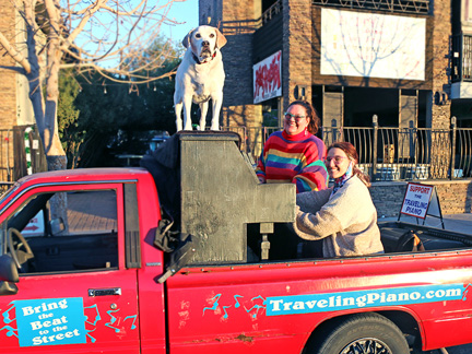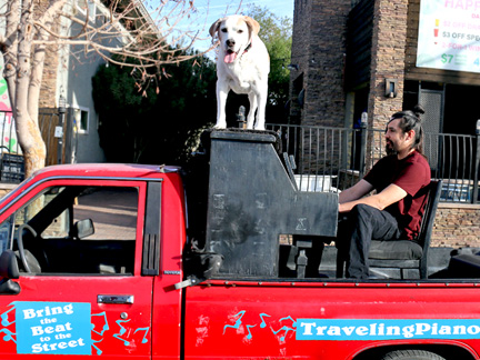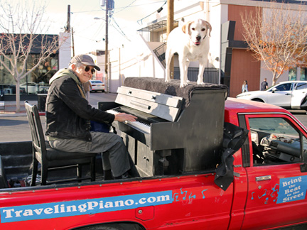 Well, it is happening. Tonight was the Art District's First Friday Celebration and I wanted to be open with the gallery. Totally exhausted, no one was around. One block away in two directions there were thousands of people but only a few walked by on the street where I was. At 7:30 PM, I just called it quits. I was too exhausted to create music, it was cold and Mo... he wanted nothing to do with any of it. He cannot see in the dark and it is uncomfortable for him on the piano. He sat in the truck where it was safe as a very tired old dog who I love with all my heart. So, what I have going is an Artist Residency to Showcase the Traveling Piano for potential backers. It will be there for a few months.
