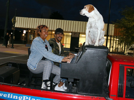 THEFT has come to the Traveling Piano for the 1st time in almost 40 years and for the last 8 years outside my door in the same spot here off of Main Street in Downtown, Las Vegas. Sadly, the sound speaker ($1200) has been taken. It happened in the middle of the night, cover surgically lifted, secure wiring cut, they knew what they were doing and it was planned. As a special fuck you, they left a lollipop in a gesture of exchange. This is the 1st time ever that the Traveling Piano has had visibility almost daily in one spot while creating a showcase, The Traveling Piano Fundraising Showcase Photo Art Gallery. People walk by daily seeing and studying how it all works and now know that is has worth in its equipment which makes it sound as good as it does.