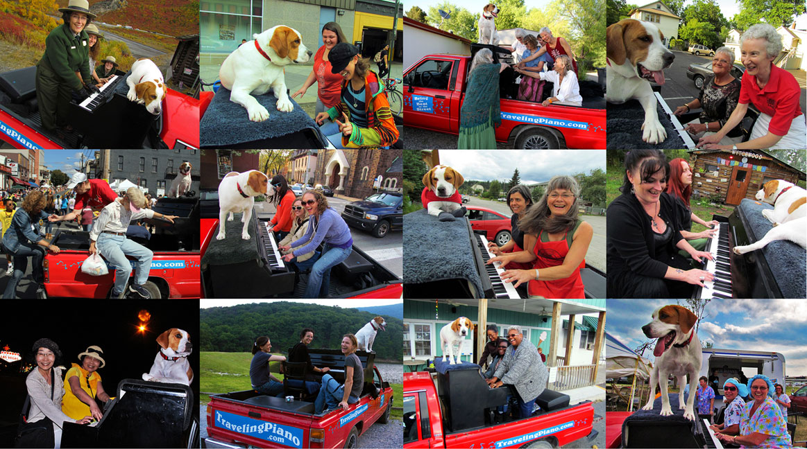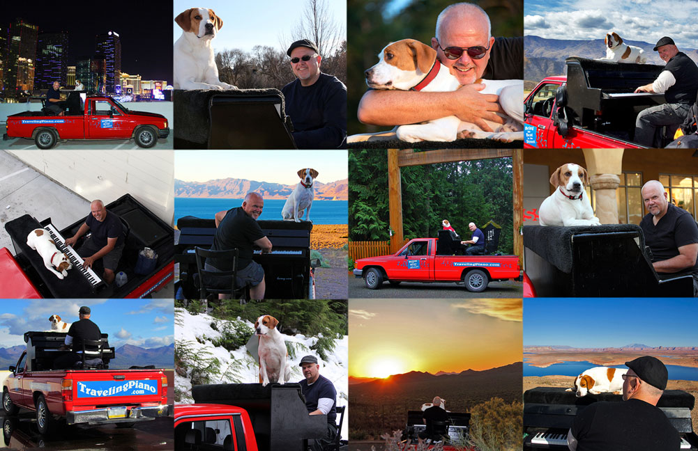 From the start in 1987 Piano Man Danny Kean, that would be me, I have worked with a piano in the back of the same truck along with two pups, Bo-ner who stayed with me for over 15 years and now Mo who has also passed his own 15 year mark in age. My two pups have served as faithful companions while hanging out on top of the Traveling Piano and giving comforting joy to everyone they meet. Concerning age, in July of 2025 I will turn seventy years old! Ahh... time rolls on.