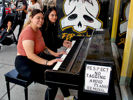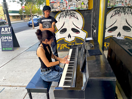 I was walking to check on one of the six Community Traveling Piano's on the streets of Downtown Las Vegas and I saw a wild kid throwing himself around as he smashed a bottle against a brick wall while screaming in anger. And then I saw he was walking in the direction of one of the piano's up the street as I thought about him attacking it. I just knew he was going for it. He reached the corner where the piano was as I thought, oh shit! I walked faster to get to the spot before anything happened. When I reached it, he was sitting at it playing calmly. He was using it to calm himself down just for a few minutes and then he got up and went on his way feeling much better. How awesome is that!