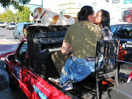 To date there has been over 100,000 one-on-one personal and intimate encounters with people from all walks of life on the Traveling Piano. Everyone is invited to take a seat at the piano for themselves in order to create music, especially if they have never before played on a piano, do not think they can play or have been psychologically damaged from music lessons, lol. People are empowered and inspired resulting in musical freedom of spirit every time.