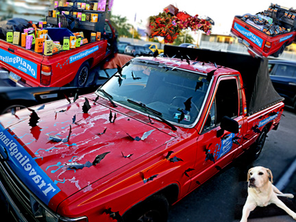I woke up with serious angst about the ability to get going with all the Halloween stuff. And then I thought, just don't do it. You can do just one day, tommorrow on Halloween and today get most of it ready. So thats what I did and it was without question the right thing to do. It took hours just to do what I did which was to attach 170 bats to the truck, fill the halloween bags and get the basic struction together. I keep telling myself how much less it is than last year and how thats ok, I'm doing the most I can. And the money... I'll just keep pushing to get the contribution to pay for it all. Constantly, I reminded myself of the fun and how I need to relay that fun to get others to contribute. I just paced myself in a way to enjoy what I was doing. I never was good at pushing myself anyway.