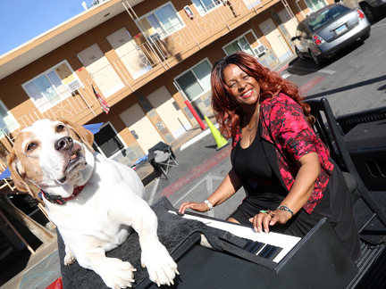 There is nothing quite like sleeping in past noon on a cold, dank, rainy day while mutually snuggling with Mo. He feels like an old favorite, familiar blanket that I have held onto for a lifetime. Mo is now almost 16. I cannot see him making it to the official date in February with all his issues because... I am 100% present in pure love and enjoyment in his being with me here, right now, today under the covers... snuggling! I do not think it has ever rained here two times in Las Vegas in one week. I love variety just as I love diversity and change of environment and scenery every once in a while. That helps keep my interest in the Traveling Piano's journey now almost 20 years and on the truck almost 40 in total, full time with both Mo and his past brother Bo. Please contribute to help keep us going.