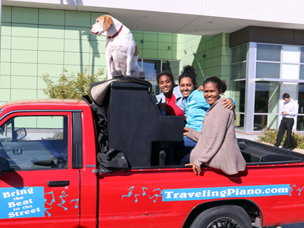 I do not have the where-with-all to be playing around with on, off, on, off with the covers. It would be a miracle to not have the covers and bungie chords stolen or the covers just removed because somebody wants to play. There are a lot of people that play on them daily. I've seen people waiting until someone gets done so they can play. No matter what... along with all the locals and visitors and obnoxious drunks, drug addicts, people living on the streets and just stupid kids being destructive... this whole idea, still going since June is remarkable! I want to continue to encourage people to spend time in their communities verses online and is there a better way than with music? Please send some contribution. www.travelingpiano.com