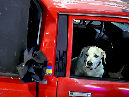 Mo is spending more time inside the truck these days when we go outside to play. His back legs barley work as the joints almost do not exist anymore due to arthritis. Balancing himself as needed with his legs is difficult. I know it drives him crazy that once he sits he is stuck sitting with no ability to get up and turn around or anything. He can climb stairs with support from the palm of my hand on his hind and can just barley go down them if he concentrates on what he is doing. Once I prop him up on all fours and he gets his balance he can walk sometimes even run a little. When I am about to put his food down on the ground he can still hop with joy a little. He still has an appetite, smiles, wants to play, enjoys sniffing the ground (like crazy) being with other people out and about and is absolutely enjoying life as it is especially our partnership together.