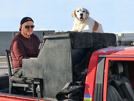 When I take Mo out with me and the weather is good, he can sit on top of the piano for about twenty to thirty minutes before he becomes to fidgety and then he needs to get lifted off and put on the ground to walk around as I continue onward with my work. Of course I lift him into the truck and then get into the truck myself to left him onto the piano. I myself am not as strong as I was just a year ago when I could lift him onto the piano from the ground. Part of Mo wants to be on the piano as that has been is spot for almost 16 years and another part of him is confused as to why he can't move around. He does know now that he will fall over if he moves. In his younger days he would be all over the place. On some days he was moving constantly pacing back and forth on top of the piano to not miss seeing or smelling anything.