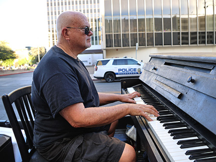 Spent some time today with two friends who found the Traveling Piano. I could not tell if they were homeless or not but, I could see they had mental problems as they told me they are both friends and veterans who suffer from PTSD. I feel for veterans screwed consistently and specifically by... republican politicians and their voters, through and through. The republican mentality has "always" been to start a war, use our nations men and women to fight for them and then just drop them in the gutter when finished and no longer useful. Some vets get through it, others suffer until they die in a variety of ways many on the streets. The effects of war remind me so much of domestic gun violence. People focus on the dead without a clue to the hell those who survive must live with for the rest of their lives mentally and emotionally.