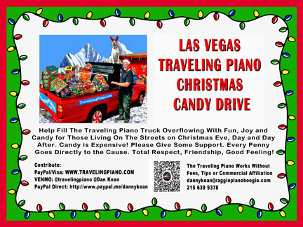Hardcore fundraising is needed now to not only keep going with the work but to replace the Traveling Piano truck while continuing community outreach for those living on the streets. The focus is now on Christmas with individually wrapped presents of candy, hand warmers, blankets, and much more costing a couple thousand with personally cooked food ongoing. The new truck will cost about $40,000 with a truck bed insert, new piano, electrical system and custom cover. Please share my fund raising posts. The Traveling Piano has been Bringing the Beat to the Street full time for almost 40 years and works without fees, tips or commercial affiliation.
