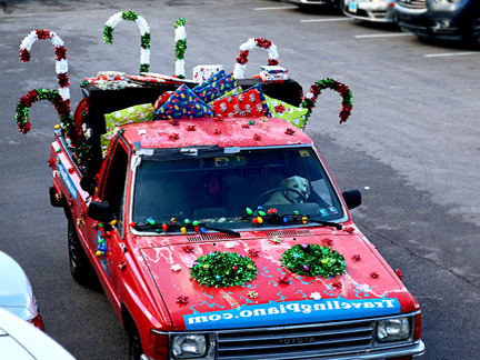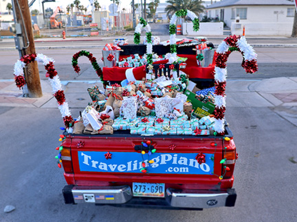 I've not been a very good documentarian through this Christmas season with the Traveling Piano because... I do not have the capability to do everything as I once did. I just need to get the job done. There is little time for peripheral distraction. With full truck bed full to the brim, and a car filled both front and back seats and trunk all to an inch from the top, filled with Christmas presents that need to be sorted, packaged and wrapped with paper and ribbon well... it is work with every waking hour. What is being done is probably the most I've ever done. Not easy an easy feat at 70 years of age! Photos give it all no justice. Taking and posting constantly might garner some contribution to pay for it all but I just do not have time for that. This is going to happen one way or another, with support or not.