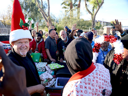 It was supposed to rain but was a beautiful Christmas Day. I was like, how am I going to do this? I did not feel in the spirit and did not want to. Then, I told myself, you are going to do it and you are going to approach it as the professional you are when you used to perform with this exact state of mind. And then it happened, the truck decorating, filling it with all the presents... Traveling Piano Santa's work went smooth and perfect and as unbelievable as it is... everything was given out in five hours! That is how many people are living on the streets. And... all the detail and thought was noticed.