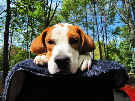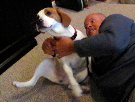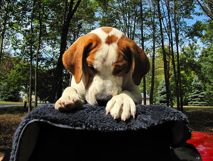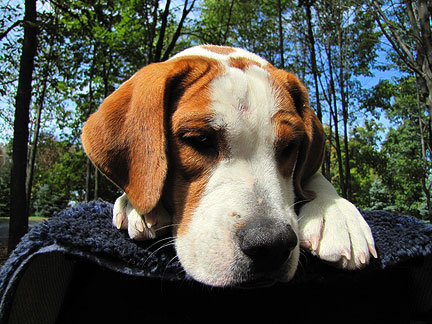 I haven't had much interest in writing here lately but some thoughts have crossed my mind so... on the subject of peeing, I realize beagles tend to have a problem in that area... whatever, bottom line is that I am realizing that I must adjust myself more to Mo's peeing needs than have him adjust to my schedule as Bo did. Mo does not know how to tell me when he needs to go out and pee and I don't have the interest in taking the time, thought and interest in teaching him so... I take him out more often and that seems to be working. Boner I would just let out the door he would do his business and come back. (he was used to a fenced in back yard) Mo, I must take him out on a leash into the woods because he will run and explore at his leisure. Thank God he has been doing his duty right away because it has been cold out! If he does not he knows he will go back into his cage inside. I am careful when playing and the top dog issue comes forefront concerning his getting excited in the house and pee. I don't play with him until right after he has been outside to do whatever there is to do. I must keep a vigilant eye and memory when he drinks a lot of water... take him out after an hour. He goes three times a day unless he has a strong drink then often four times. Its an aggravation to deal with all this but I accept that it goes with the commitment. I would not be doing it if it wasn't worth it.