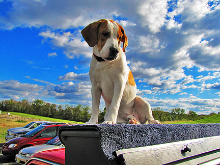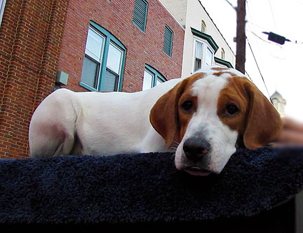 So... this dog Mo and I are spending some time together. The ride out of his place and into town to visit some friends was bumpy and the road was curvy for quite awhile. Maybe thats why he peed all over the truck seat. The seat acted like a baby diaper for him. I could not figure out why my cell phone did not work that night. I went to change the battery and it was all wet inside. Mo had filled the bag that holds my wallet, phone, camera etc... with pee! He was sitting with his ass up against me I thought, "cute" having no idea he was peeing on me because the seat, floor an all my stuff was already soaked. I do not think he could help it. We spent a long time in Berkeley Springs with friends on the street. For the entire second half of the ride back to the cabin he held tight until we got out of the truck and then... he let loose on the ground, lucky me. Back at the cabin he was great until he began to dump big time on the floor rug. His cage was almost set up... too late. I don't know if I am going to be able to deal with this process of training a dog again right now in my life and while traveling on the road? He certainly has been a lover... kind and gentle all day. He's been farting a lot, really bad stuff. I think he has fleas... needs a bath. What the hell am I doing?