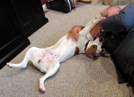 I became majorly pissed off last night when he pissed hardcore next to my head on the carpet as I was laying on the floor. From past experiences I am now fairly certain this was an act of dominance. I had let down my guard in rough housing with him and playing in a way that was being overly trustworthy. Every time I run around the house with him or wrestle he turns into a pissing act of dominance. It bothers me to think I cannot play with him like this. It is one of the ways for me to give him exercise when we cannot go outside. When he does stuff like this I go into a... "get rid of this dog" mode until I realize I made a commitment. Sometimes I do not feel bonded with this dog but then again the relationship is less than three months old. We are bonded... just not in perfect harmony... yet.