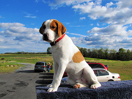 The lack of drama was huge but still, internally... the Shock, the Disappointment of him not Caring about ME, the Fear of having an Untrainable Animal, All the Work with him that is ahead of me... "Lions and Tigers and Bears, Oh My! In the morning I actually woke up feeling sick, a type of sick that comes from bad nerves. Why did he pee last night? I thought of six possibilities. 1. I'm feeling crazy and maybe I am transferring that energy onto him. 2. A few hours before, Mo had a free range run for the first time in a field where wildlife especially deer run rampant. His sense of smell experience, territory, other creatures most certainly soared. 3. In the cabin where we are staying may have a mouse in it. There is always one at this time of year and earlier in the night I had watched him sniffing around in corners and in the air which made me think about it. There are also cats roaming outside and the neighbors dogs keep sneaking over to mark everywhere. Has his marking instincts taken over? (never the less, not acceptable) 4. I had been ultra emotional with talk and a petting session just moments before. Did this result in an instinctual act to dominate and top dog me? 5. He sees me use the bathroom, maybe he wants his own room and thinks he should be able to mark in the house also. 6. Maybe he just became mindless and did not think or care.